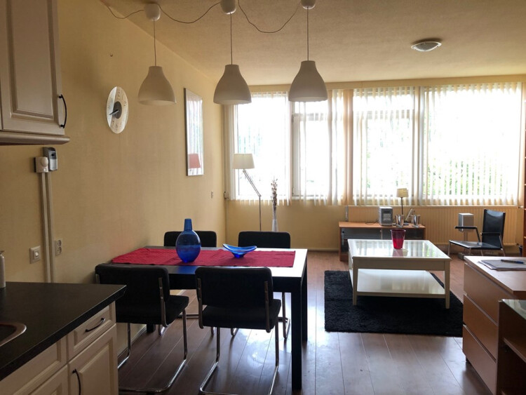Het appartement is netjes afgewerkt en voorzien van laminaat vloer. Ruime woonkamer met open keuken voorzien van koelkast, vriezer, kookplaat, afzuigkap en magnetron. 1 Slaapkamer en badkamer met toilet, douche, wastafel, wasmachine en droger. Op 5 minuten (auto) afstand van het centrum, centraal station en busstation.